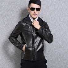 新款男士连帽休闲拉链真皮皮衣连帽皮装 / YC-J-67