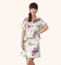 夏季新款短袖连体束腰修身仿真丝睡裙 女士家居服 / 8701如意蔓草