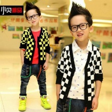 韩国童装宝宝儿童新款毛衣开衫 男童格子针织衫外套韩版春装 / 男童格子针织衫外套