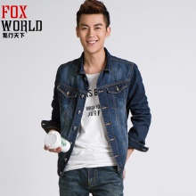 新款韩版男牛仔les浅色水洗夹克贴章37号牛仔 外套男 / 5326